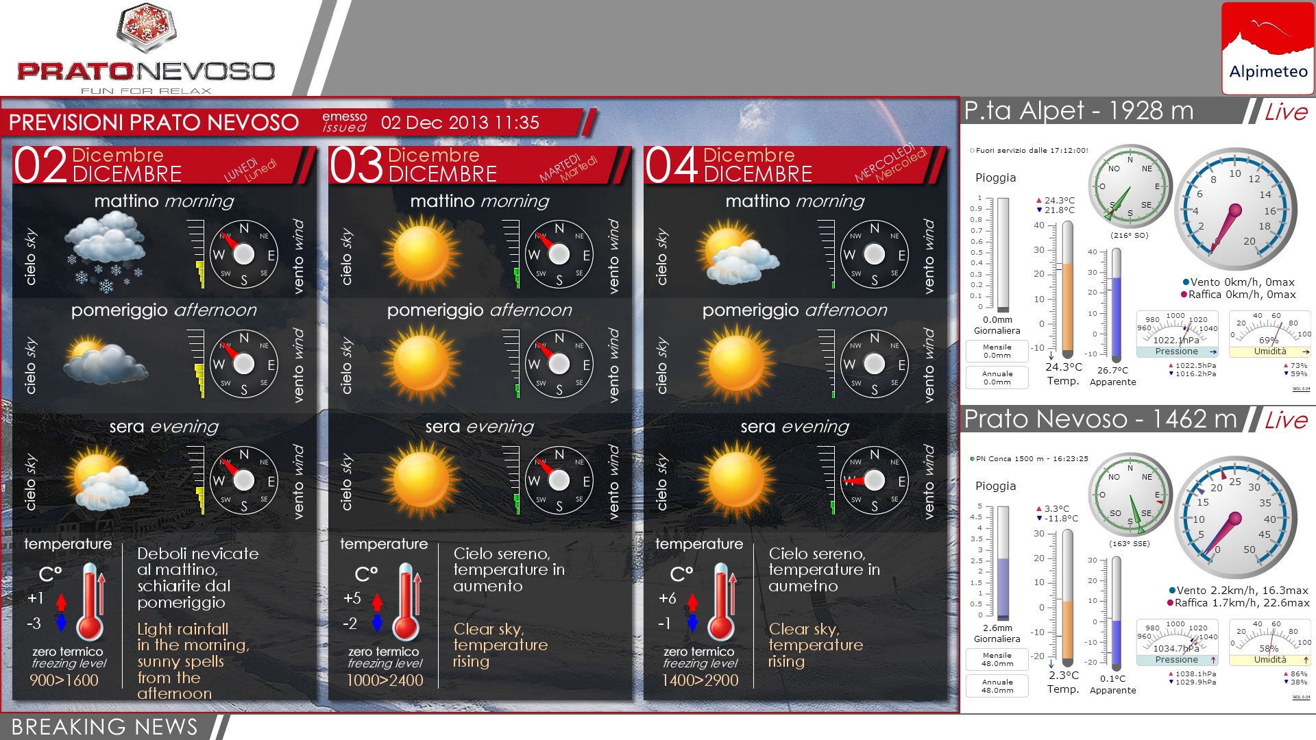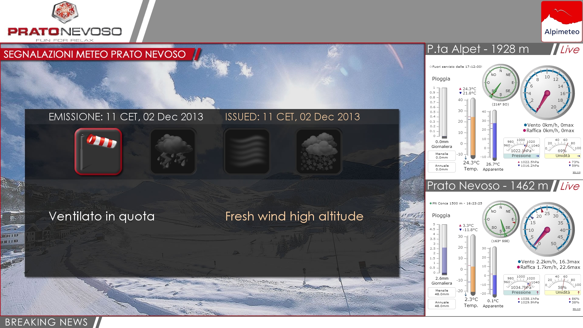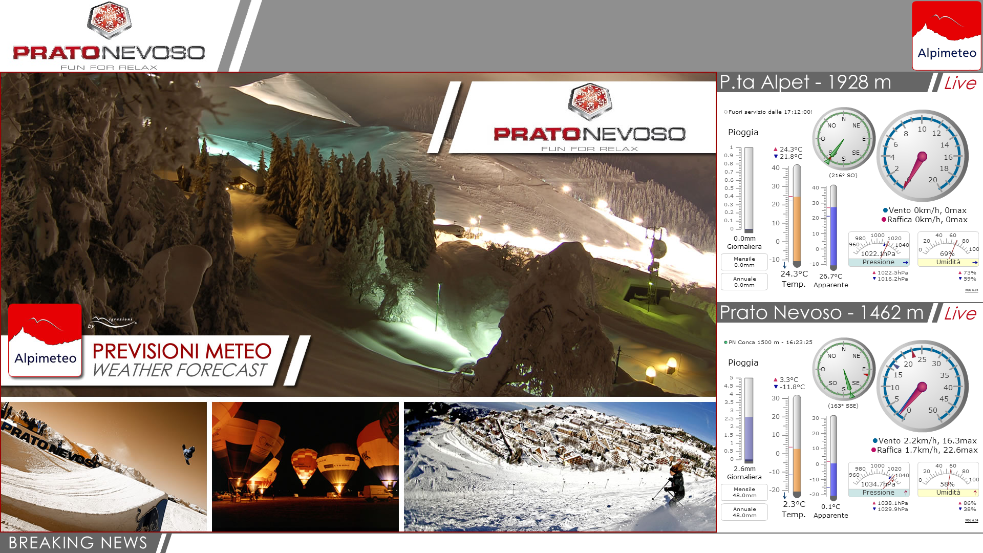 Il servizio Alpimeteo, si basa su un sistema di rilevazione e di trasmissione di tutte le informazioni meteo utili ai soci e al personale dell'impianto sciistico.